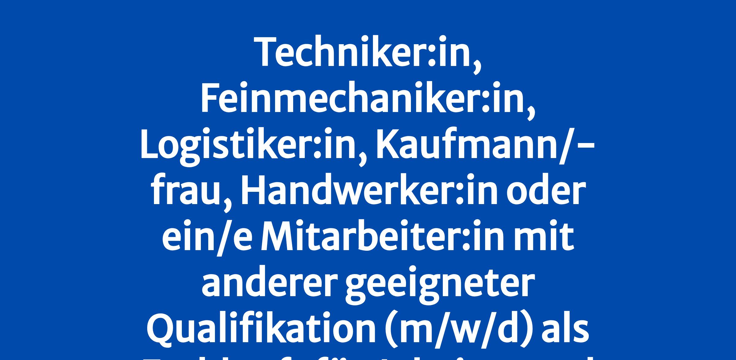 Techniker:in, Feinmechaniker:in, Logistiker:in, Kaufmann/-frau, Handwerker:in oder ein/e Mitarbeiter:in mit anderer geeigneter Qualifikation (m/w/d)